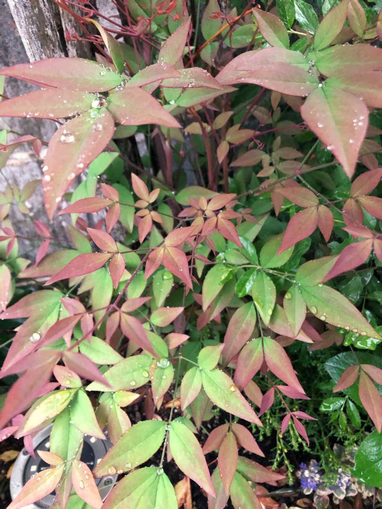 南天の葉が紅葉して、グラデーションになっててキレイ♡