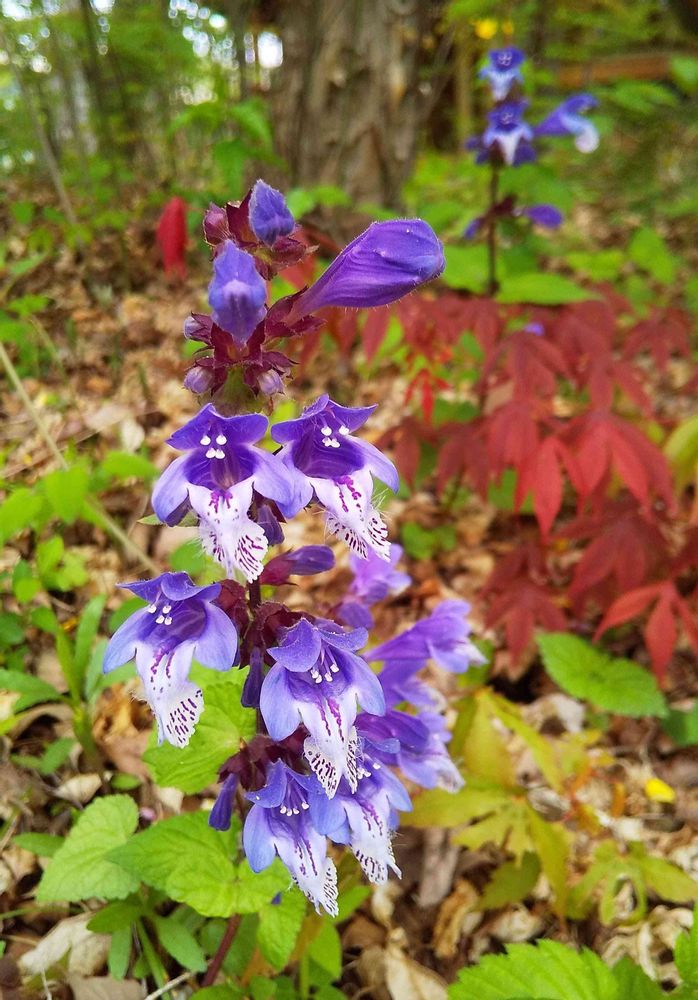 庭のあちこちから顔を出すラショウモンカズラ、このコはモミジの下で咲いています。周りにはモミジの実生が沢山🌱を出しています。まるで庭を見守る妖精のようです✨🤍💜🌿