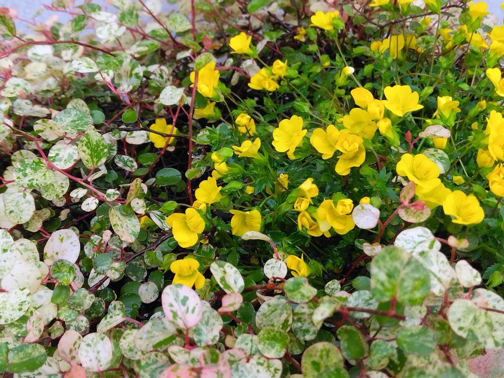 4年目の斑入りワイヤープランツと🍀メカルドニア ゴールドダスト🍀の寄植えです😊💕