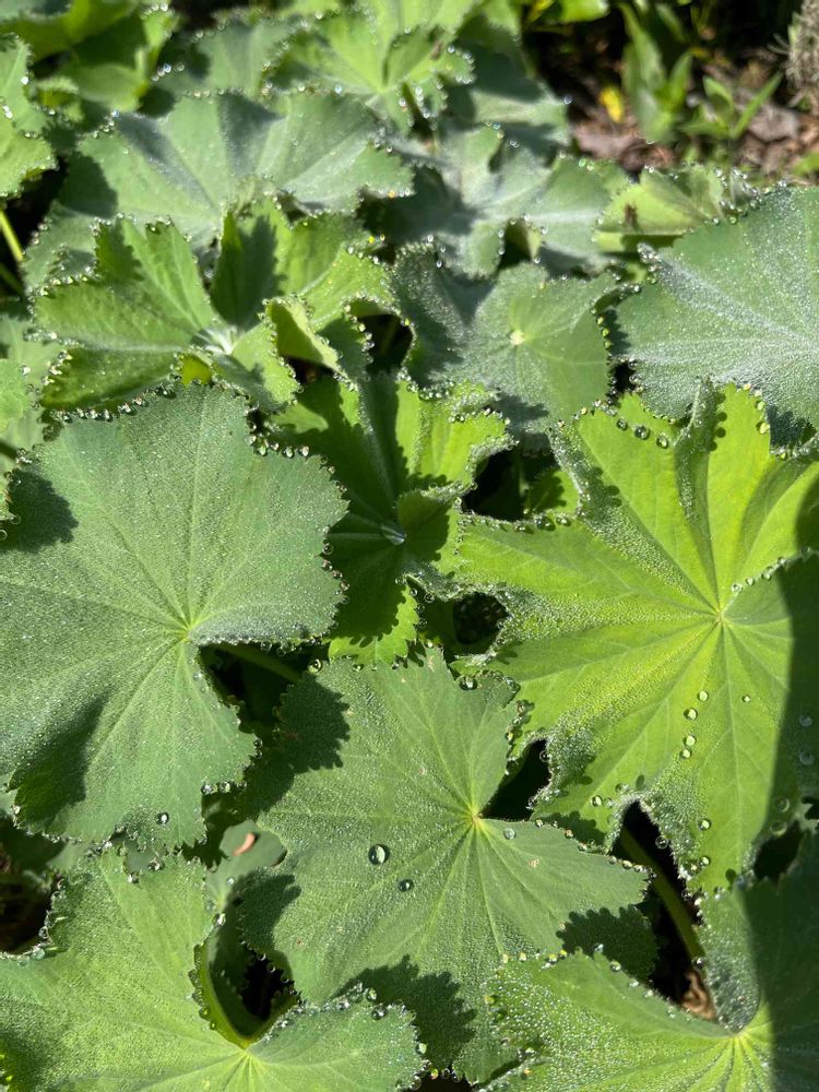 アルケミラは夜のうちに、葉の緑に露を結ぶ