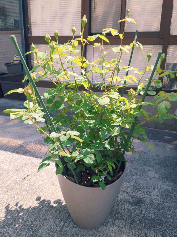 同じ鉢が2つあったので、グラハム・トーマスさん、本日ご近所さんへお嫁に行きます(^o^)