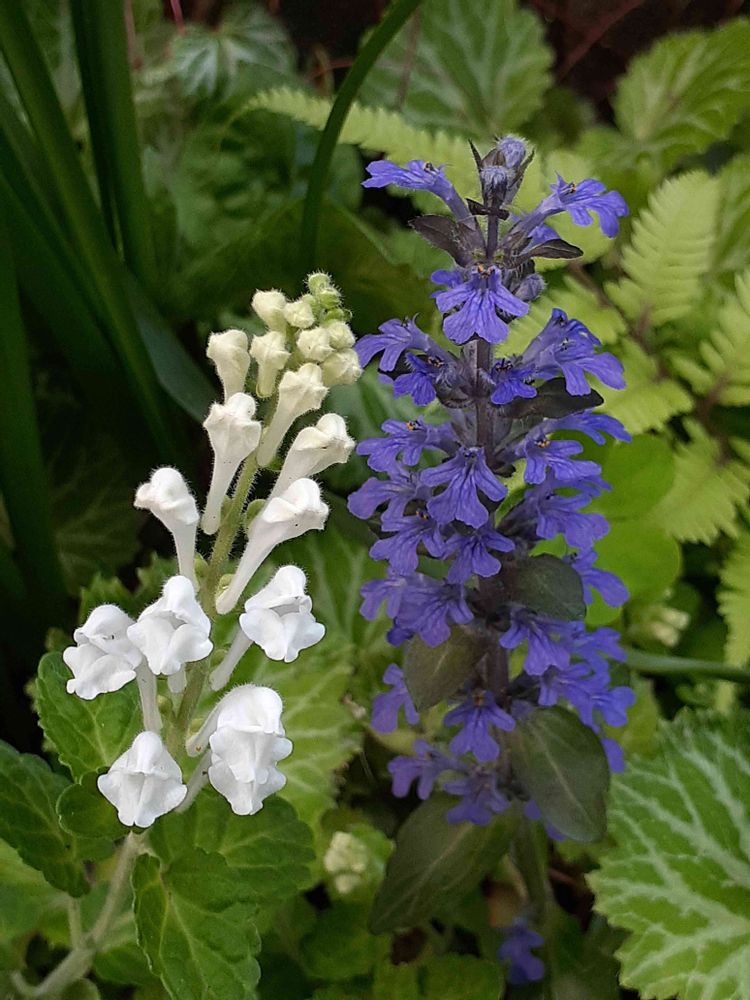 セイヨウジュウニヒトエとコバノタツナミソウが仲良く並んで咲いていました