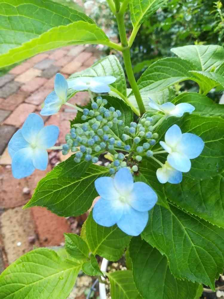 先日購入して植え換えたアジサイが咲きました。まだ幼木なので本格的な開花は来年以降。