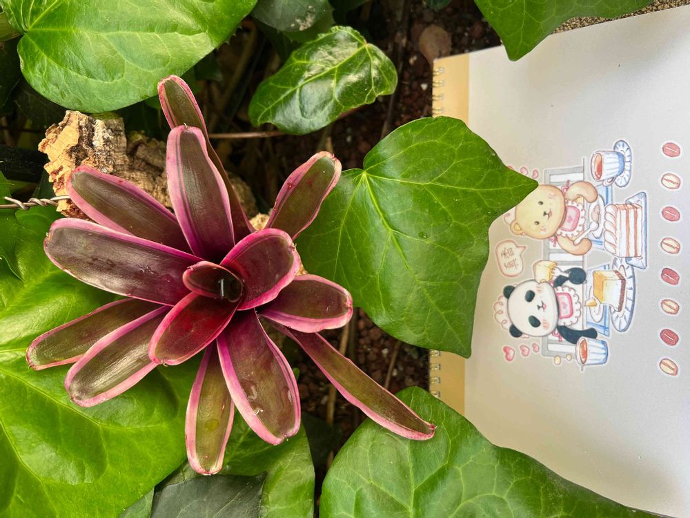 真ん中に紫色の花が咲くそうなんですが、咲いたの見たことないんですね😢