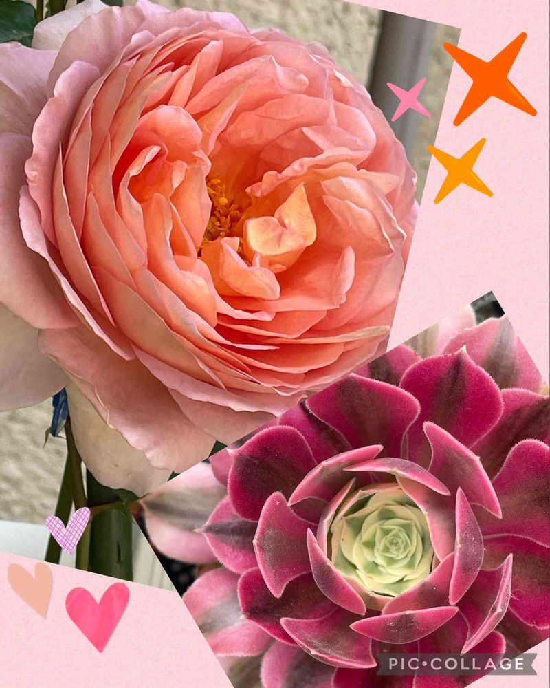 薔薇🌹と違うもう一つの方はお花じゃなくて アエオニウム ピンクウイッチという多肉植物🪴なの 多肉ではうちで1番の💰お高い子 さすが見惚れるよ💕🤗