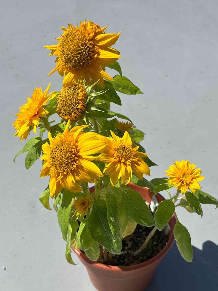 窓全開のサンルームで過ごしている鉢は小さいものまでほぼ開花しました🌻