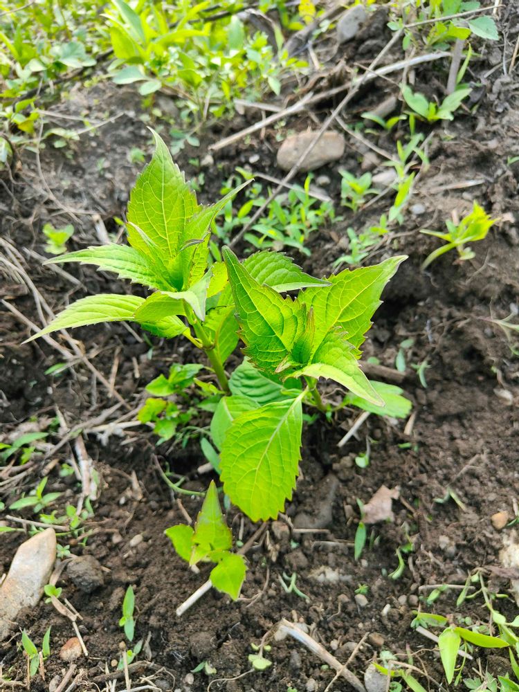 今日はラッキー絶えたと思った甘茶が生き残って芽が出ていた〜昨日四葉のクローバー発見に感謝かな