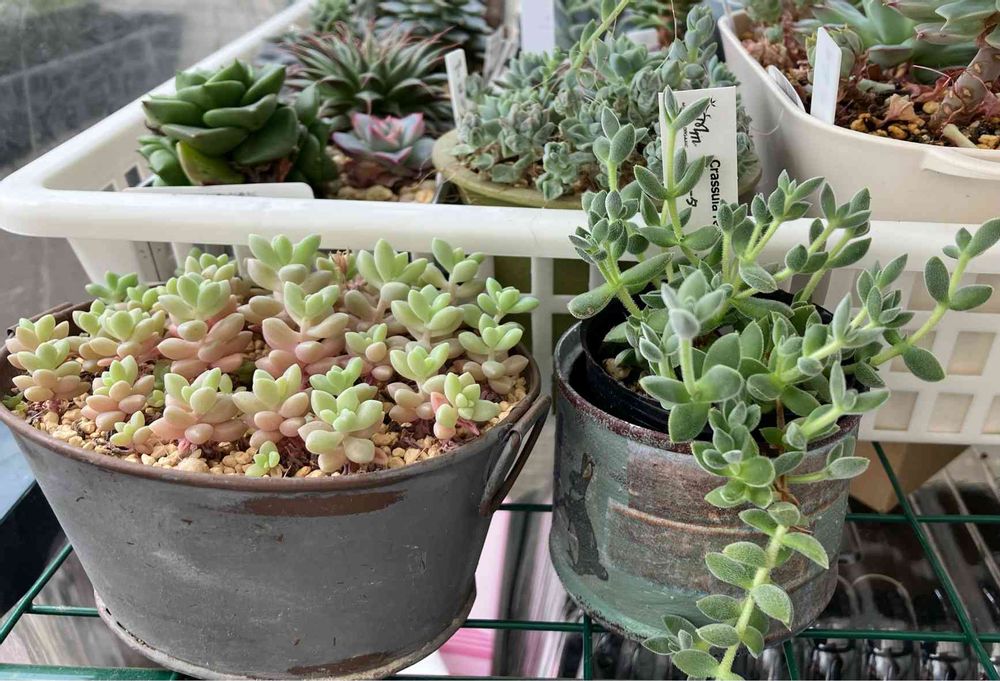 やっと、最低気温が5℃を超えてきたので、少しずつ多肉さん達を外に出し始めています♬