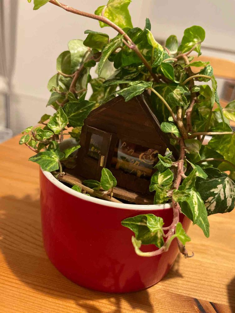 百均やら、 ホームセンターで売ってる 一番小さい観葉植物に、 ちっさい家、作ったりしてます。 ちっさい家用の家具も作ります。 窓にお弁当のふたとかのプラ貼って ガラスっぼく…電気もつきます💡