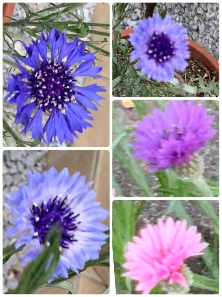 黒花の種を頂き撒きました。葉は普通のとは違いギザギザしていたのですが青い色が咲きました♪以前からのピンク、水色、紫、も咲いてます💕