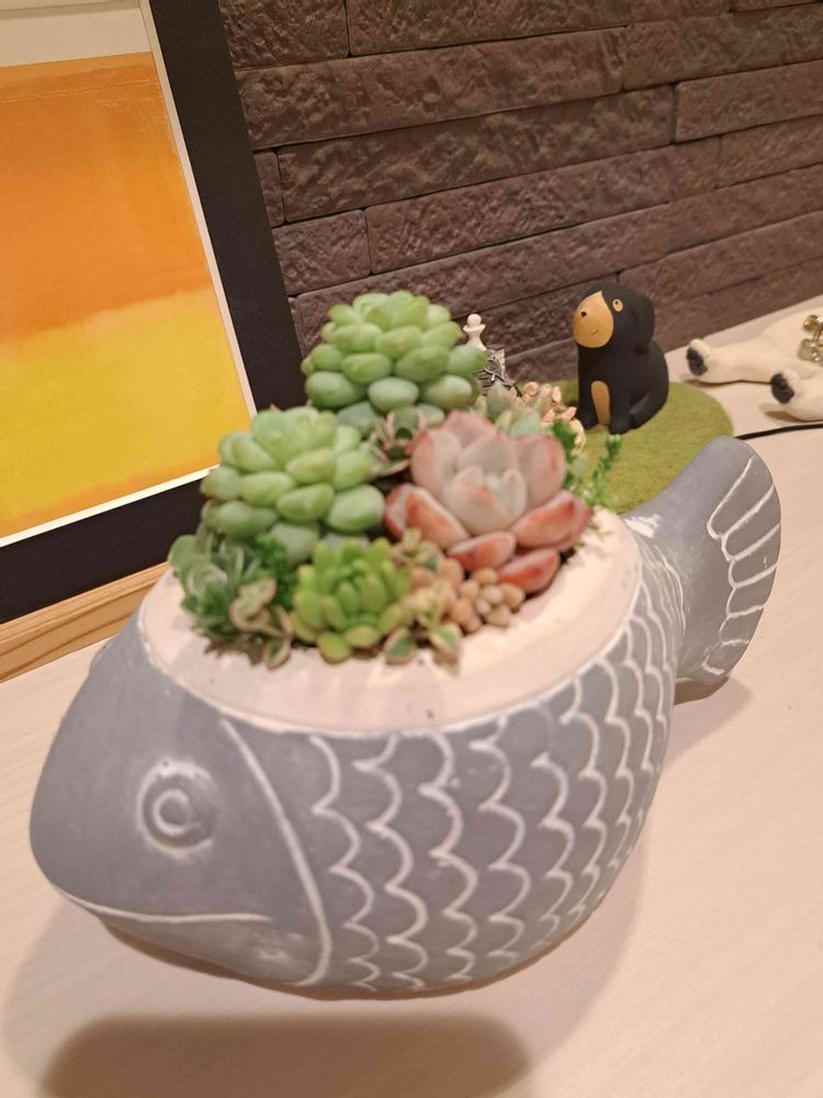 ちょっと遠出して、多肉狩りに行き、お魚鉢に寄せ植えしてもらいました🎵