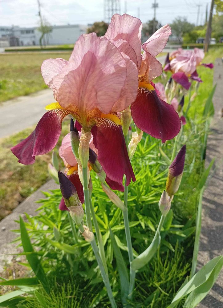 公園のそばの田んぼを散歩してると、この大きなジャーマンアイリスに目が👀行きました。