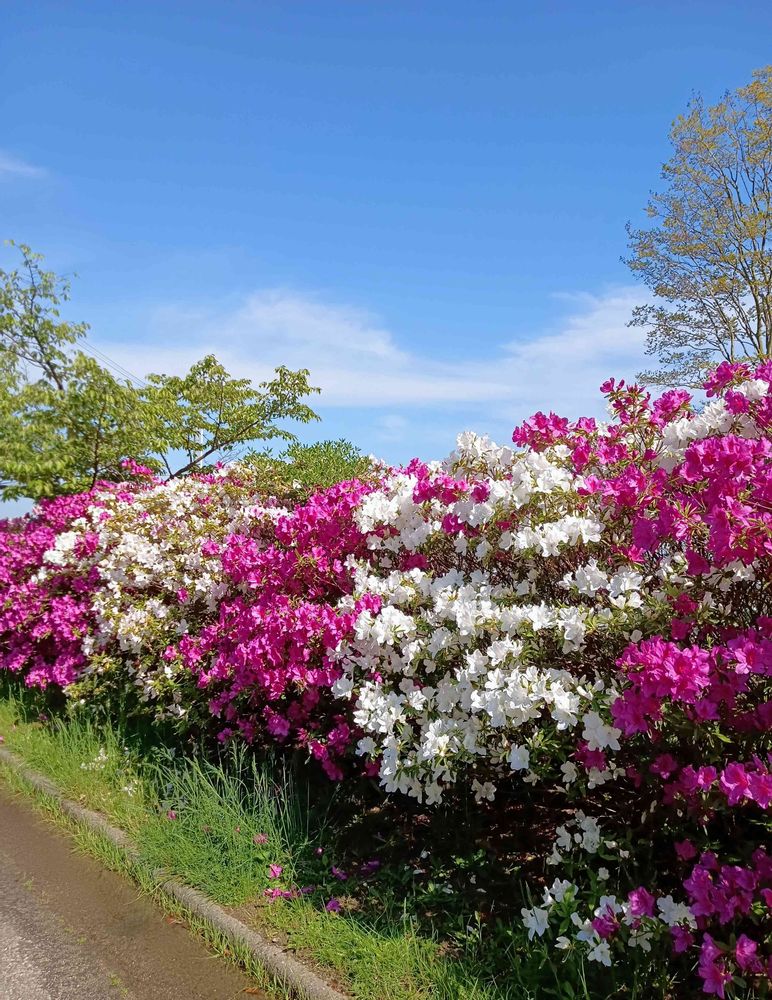 先日は青空に恵まれて、とてもいいお天気だったので、赤白のツツジがより一層奇麗に写りました😊