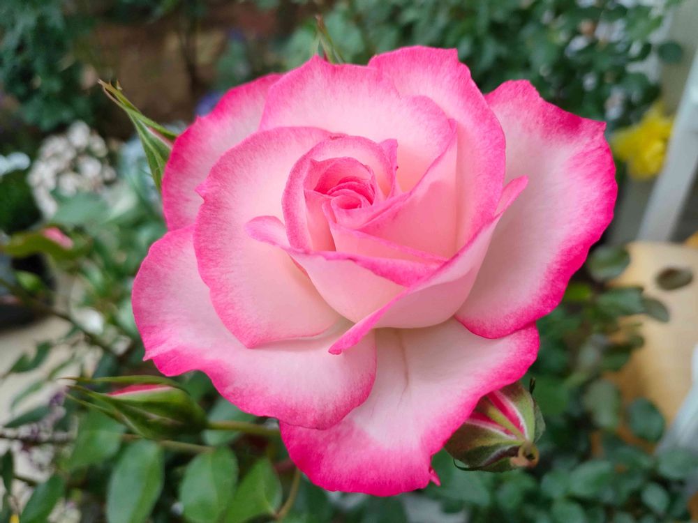 白にピンクの覆輪が可愛くて大好きな薔薇です😆