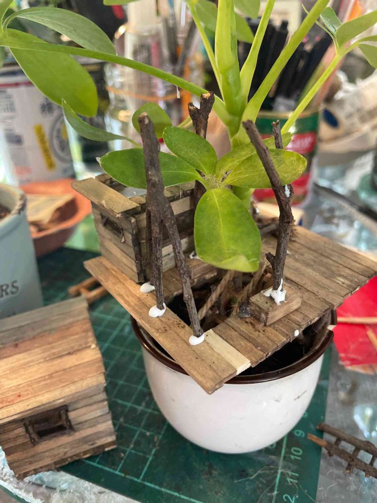 百均やら、 ホームセンターで売ってる 一番小さい観葉植物に、 ちっさい家、作ったりしてます。 ちっさい家用の家具も作ります。 窓にお弁当のふたとかのプラ貼って ガラスっぼく…電気もつきます💡