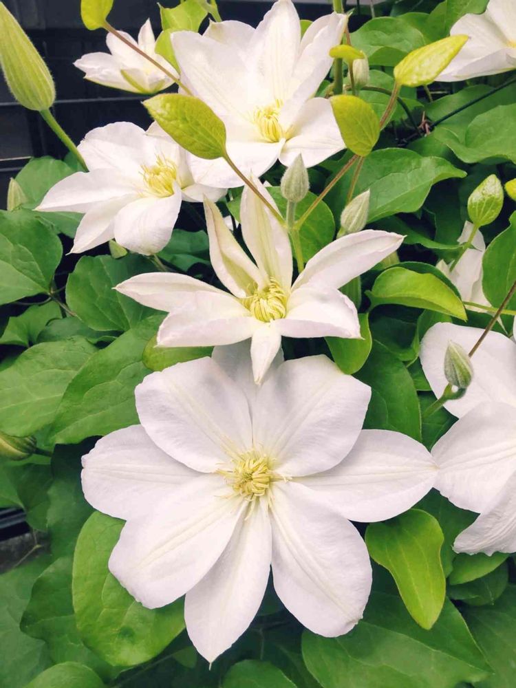 昔々クレマチスブームだった頃に買ったわが家の白雪姫。あの頃は私、個性的で華やかな花ばかり集めていたんですが、なぜかこのシンプルな白にしました。