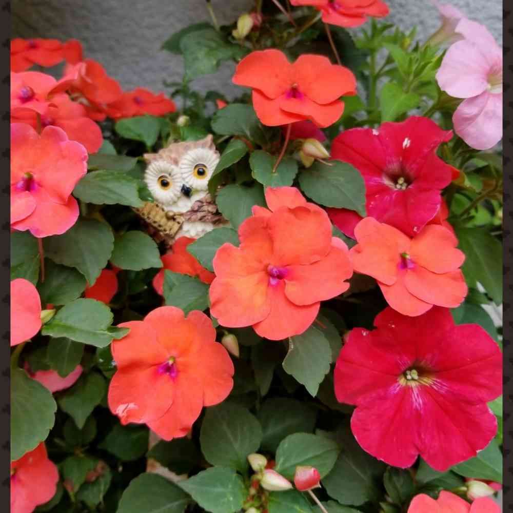 インパチェンスの合間からヒョッコリ顔出す梟チャン💕 ゴイスーⓒⓤⓣⓔ♡😍