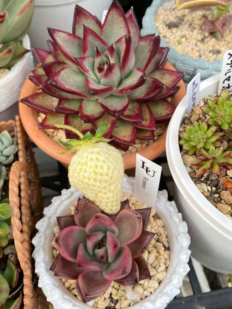 多肉ちゃんと思いきやイチゴちゃんいた😁🍓