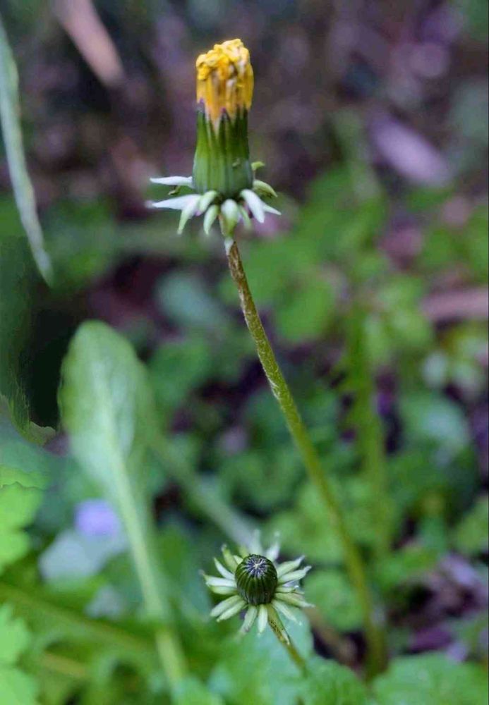 昨日 庭の奥の西洋タンポポの花後と蕾を写しました
