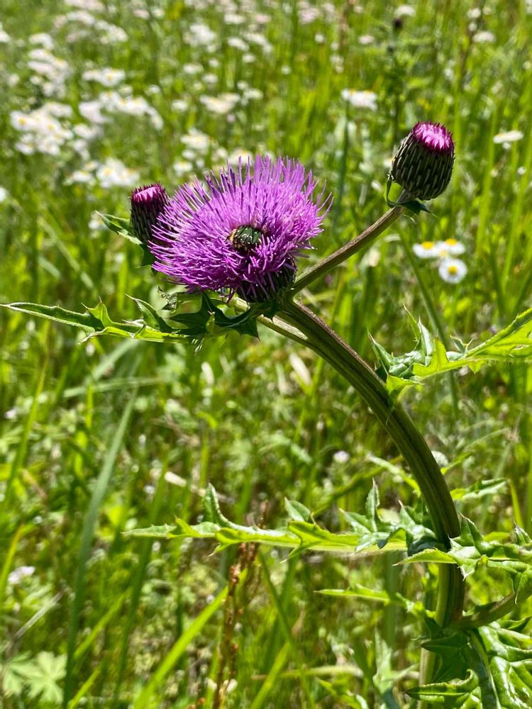 そうそう〜なんですよ、ハナムグリさん達、食事なんでしょうね😄アザミの花にあちらこちらで、喧嘩もせずに、もぐりこんでました