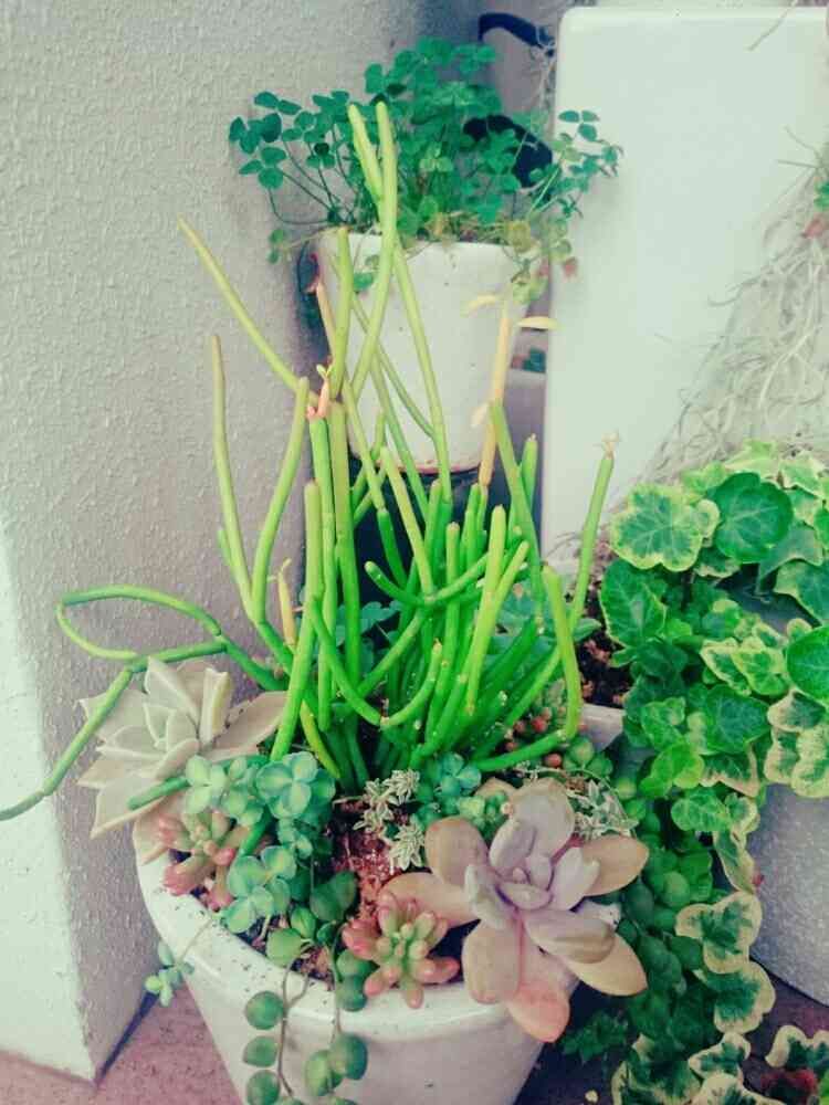 多肉ちゃんと寄せ植えてるユーフォルビアティルカリたんがのびてる**(ू•ω•ू❁)**