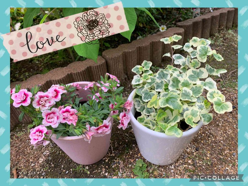 カリブラコアは八重で可愛らしく、ヘデラは丸い葉でまたまた可愛いです。