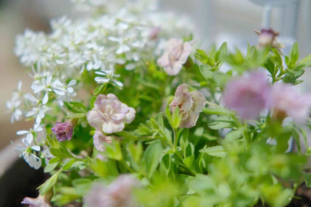 カリブラコアティフォシーとユーフォルビアをお気に入りの鉢に寄せ植えしました。
