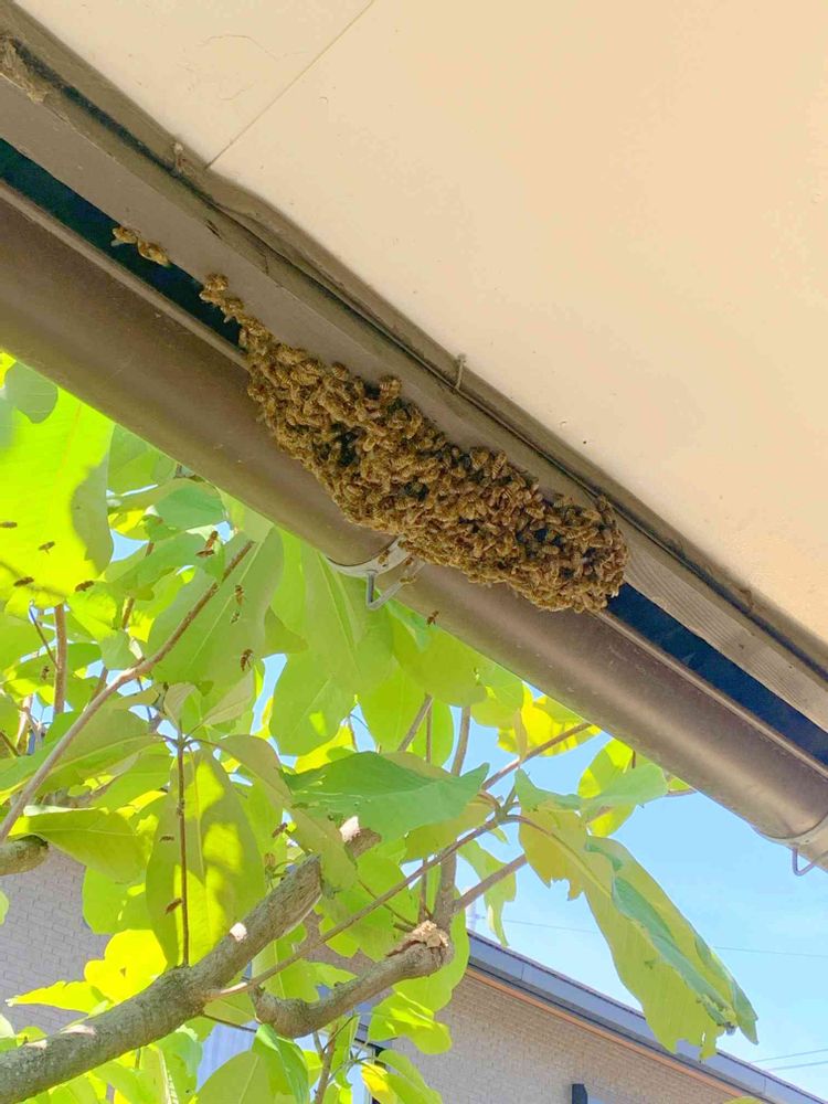以前、エアコンを替えてもらう時に、二階の雨戸の枠の中に、小さめの蜂が巣を作っていたらしく、電気屋さんがスプレーで駆除したけど、ダラダラ蜂蜜が流れて驚きました。