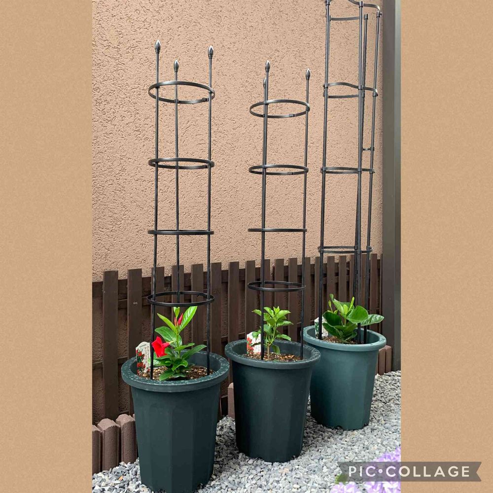 本当は鉢を少しずつ大きくしたほうがいいので悩んだんですが…ツルが先に伸びると書いてあるから巻きつけながら育てたいと思って35型深鉢に植えちゃいました。