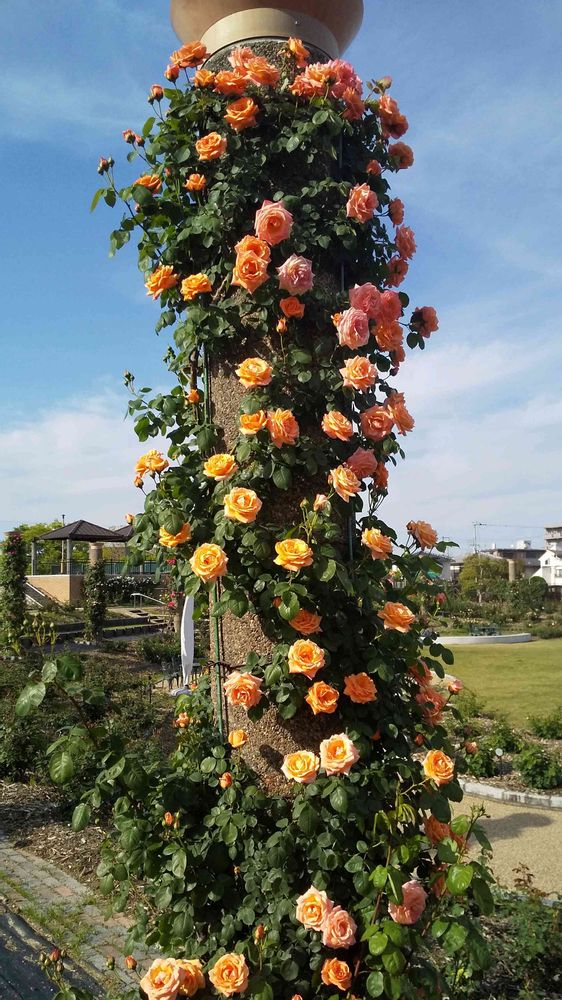 茨木バラ園にて、オレンジ色のお花「つるバラ」をパチリ!📸🏵️🌿🌞