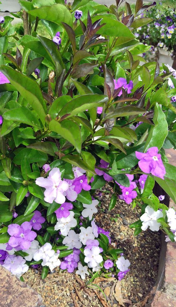 バンマツリの花がたくさん咲きだして、庭にとても良い香りが漂ってます💜🤍☺️