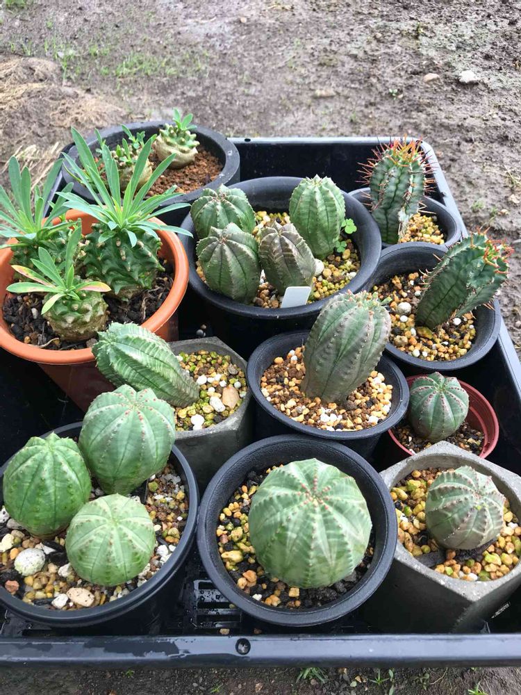 ウチのユーフォルビア実生っ子達です。2016年8月に蒔きました。植え替え後の管理がヘタクソなせいで植え替えの度に数を減らして今に至ります。分かりづらいですが真ん中の手前から2株は花芽が付いています。これ以上減らす事なく大きくなってほしいです。そしていつか種が採れたらいいなーと思います。