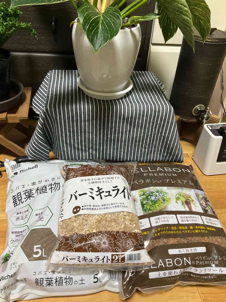 買ってはる観葉植物の土に 20%ぐらい ベラポン入れてよく混ぜて使ったら 良いかと。。🥰