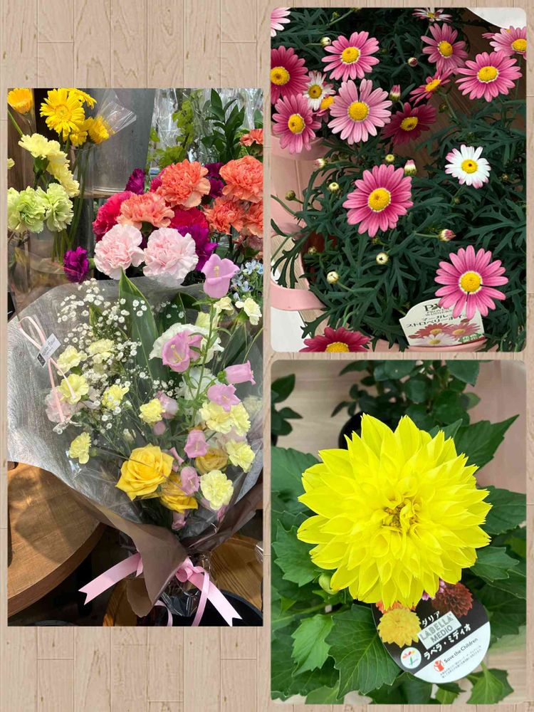 📷は、ピンク色のマーガレットと黄色のダリア🌸🌼今年は何を贈ろうかなぁ?