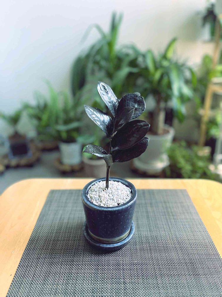 前から欲しがっていたザミオクルカス・レイヴン🐦⬛がお仲間入りしました✨漆黒の葉と鉢も濃い紫の色にして、落ち着いた感じに仕上がって満足です✨希少種なので大切に育てて行きます😊