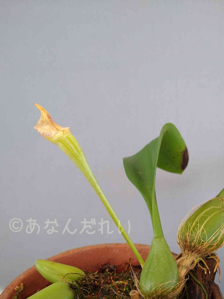 4月にバルボフィラム sp. 'パラワネンセ'とバルボフィラム ロビー亜種シアメンセを並べて撮った時、ついでに'パラワネンセ'の花粉塊をシアメンセの柱頭に付けておいたら実が出来てるっぽい。種子出来るかな?
