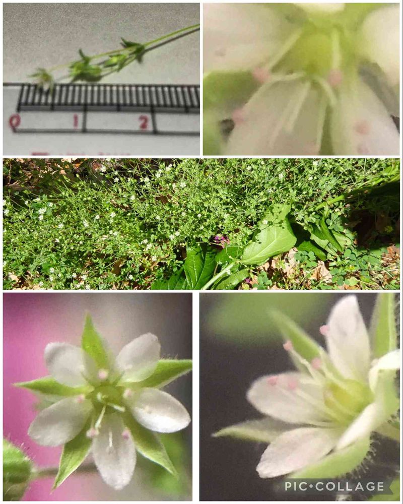 茎の先に白い5弁の可愛い(´・∀・)お花ですねぇ🍀雑草ながら❣️