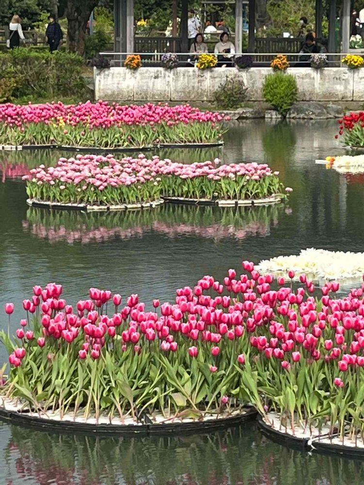 水辺のチューリップ⛲️🌷🌷🌷✨