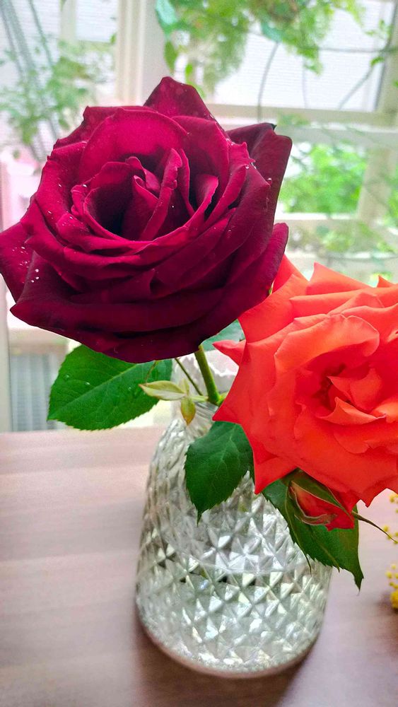 右は自分で10年以上前に買って庭に植えていた薔薇さん。