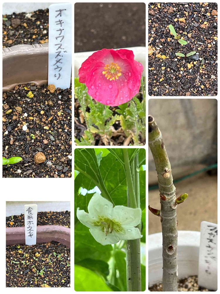 おはようございます。小雨、19.8℃、8:40ちょうどいい。オキナワスズメウリ、23日目、発芽し始めました。食用ホオヅキ、17日目、たくさん発芽しました。ポピー、236日目、第一号の花が咲きました。ホオヅキ、花が咲きました、今年も透かしホオヅキを作りたいのでたくさん実ってくださいなぁ〜。マリーゴールド、残ってた種蒔き、18日目発芽し始めました。フィカスウンベラータ、室内で越冬させましたが、全て葉っぱを落としまひたが、横から新葉が出始めました。😻🥰😍😸😋☺️