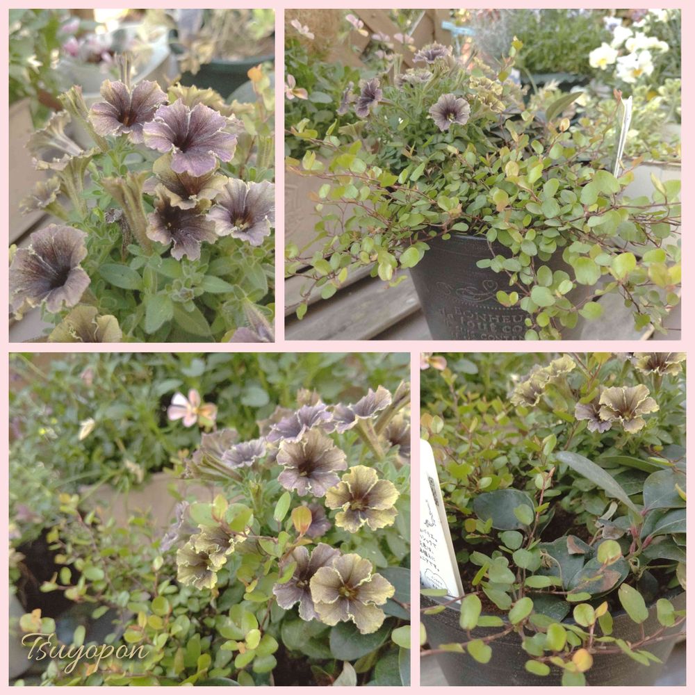 こちらは、ワイヤープランツのゴールデンガールさんとゴールテリアのビッグベリーさんはそのままに、ペチュニアのシュバリエさんを合わせてシックな寄せ植えにしてみました(*´∀`)♪