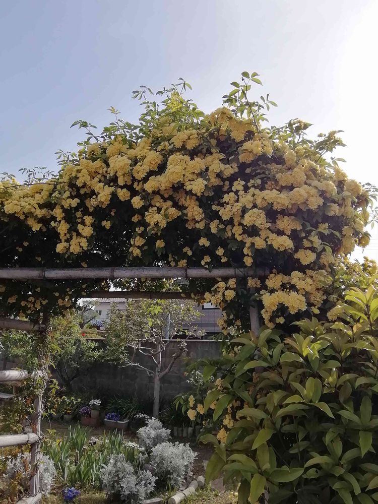 いい感じにモッコウバラのアーチが出来ていました。