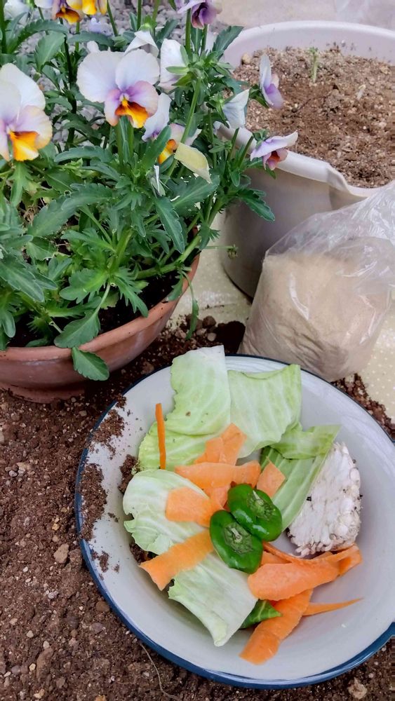 野菜くずを土に戻して古い土を再生する生ゴミ堆肥コンポストを続けています。
