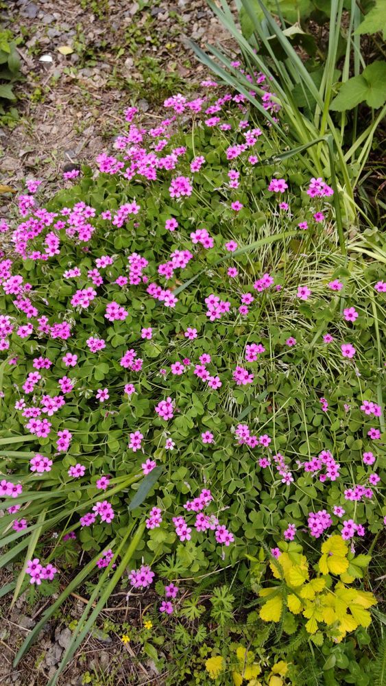 草抜きして少しスッキリした庭で、イモカタバミもたくさん咲いてきました!1m近く広がっています😳✨💕