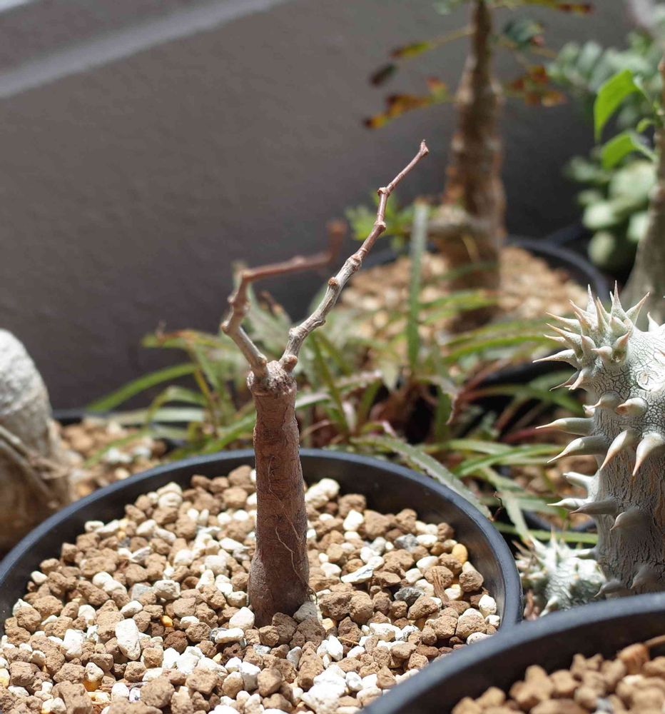 去年根挿しして休眠中のパキプス。親株もまだ寝てて寝覚めが遅い。