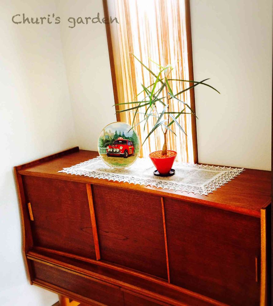 このキャビネットに合わせる植物を探して、ボトルツリーをチョイス🎵