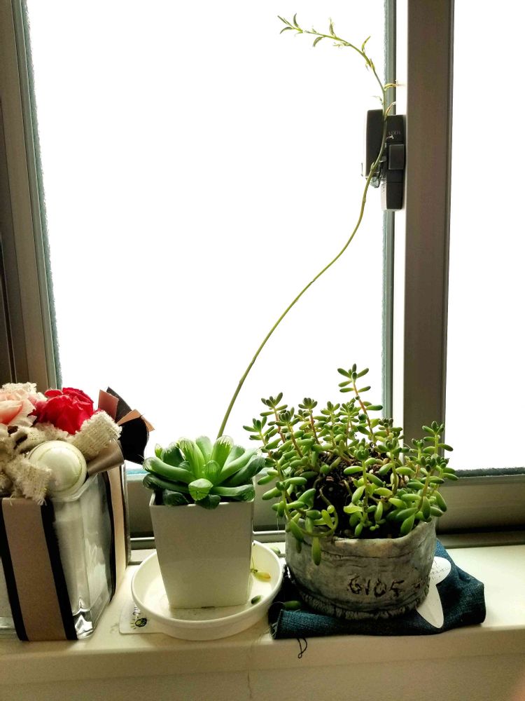 ハオちゃん(ハオルチア属)は、特にこんな感じに長ーい花芽みたいですよ😁