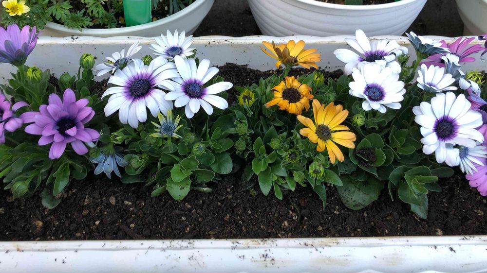 オステオスペルマムを5株お迎えしてプランターに植えました。元気に咲いてます。蕾も多く長持ちするので好きな花です🌸🌸🌸💕💕