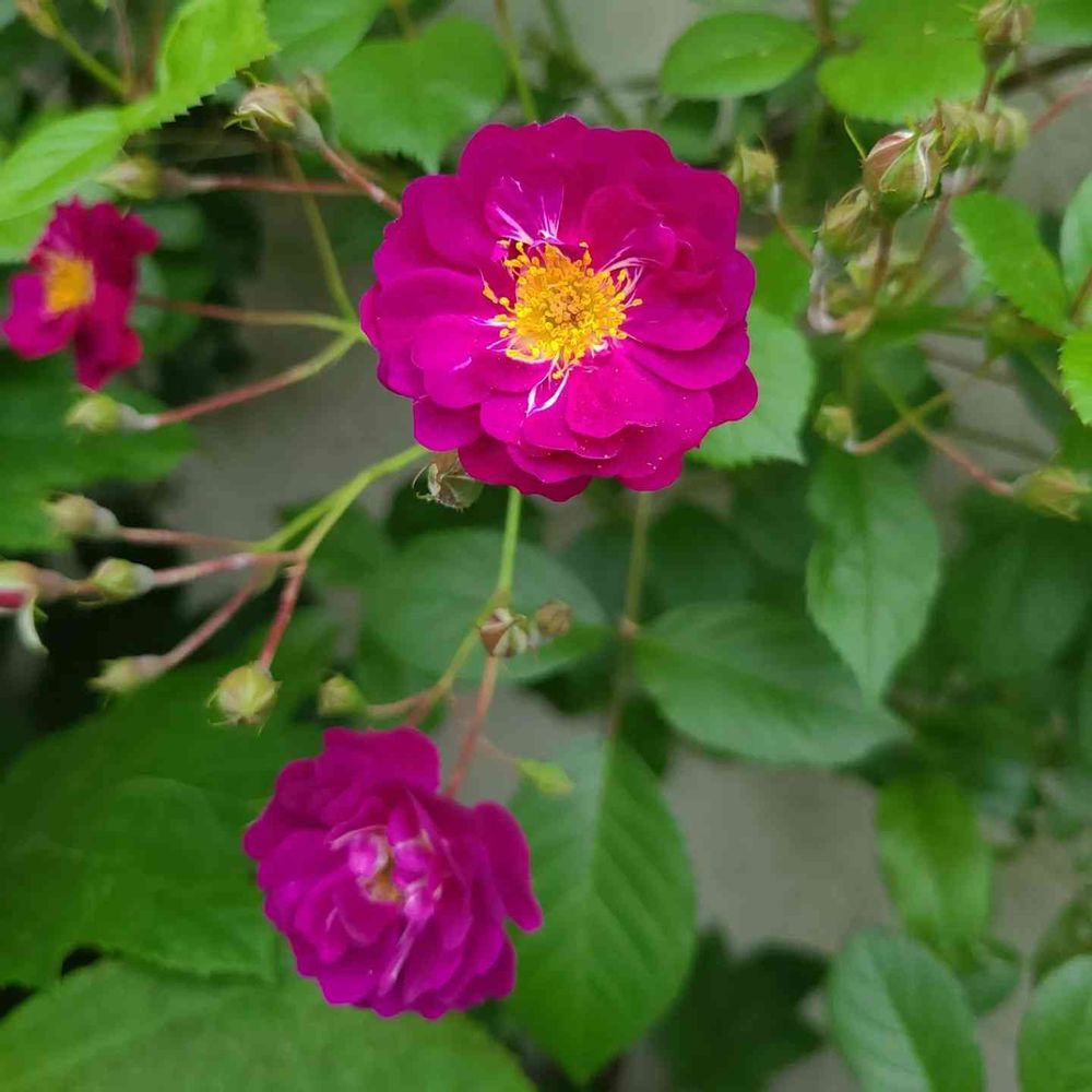 さん ホームセンターの園芸コーナーでアーチに白バラとコラボしてるのを見て衝動買いしました😅💦日陰も🆗とのことでしたが、やはり太陽大好きのようで、東側に植えて、虫さんに注意したら順調です😁🌹🌱🙌