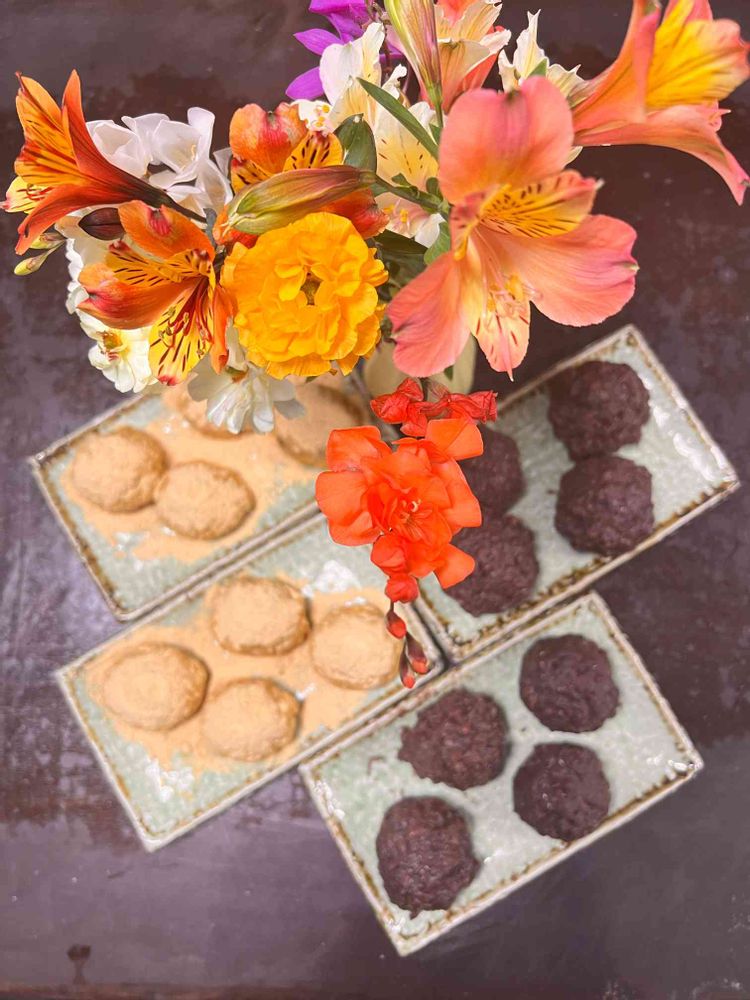 きな粉に少し塩味を付けて、甘い味に慣れた舌がリセット、切花で春を感じながら美味しく頂けました😋